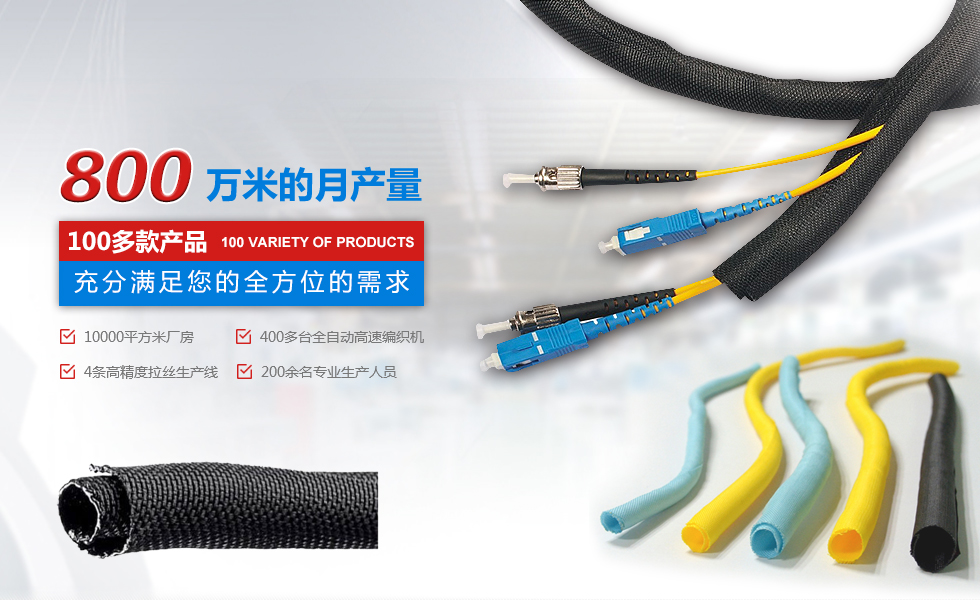 自主設計、研發(fā)、規(guī)模化大型生產企業(yè) 擁有廠房10000平米,400多臺全自動。高速編織機四條高精度紡絲生產線,員工200余人,月產量800萬米,中國最大絕緣保護套管生產企業(yè)之一。